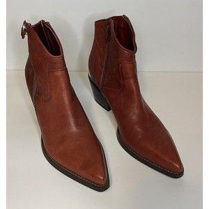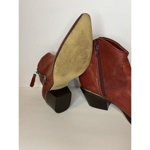 Guess WomenNalony Dark Red Western Booties 9.5 Medium Mid Block Heel Pre owned.