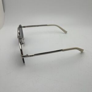 Guess Women's 59mm Aviator Sunglasses in Ruthenium with blue lenses. These non-polarized sunglasses offer 100% UV protection. The frame is silver with a bridge width of 14mm and metal construction. The lens width is 59mm, and the arm length is 140mm. Made in China.