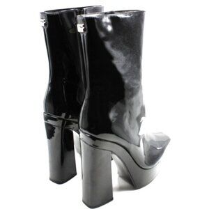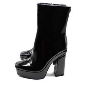Guess Womens Black 1-1/2 Platform Cushioned Logo Byra Square Toe Block Heel Zip-up Dress Booties