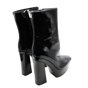 Guess Womens Black 1-1/2 Platform Cushioned Logo Byra Square Toe Block Heel Zip-up Dress Booties