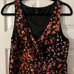 Guess Women's Black Abstract Faux Wrap Dress NWT Size 12. Leopard Print, V-Neck, Sleeveless, Midi, Cocktail Dress. Open to offers!