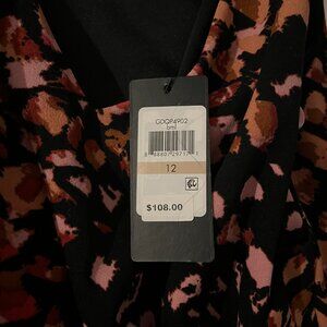 Guess Women's Black Abstract Midi Faux Wrap Dress NWT Size 12