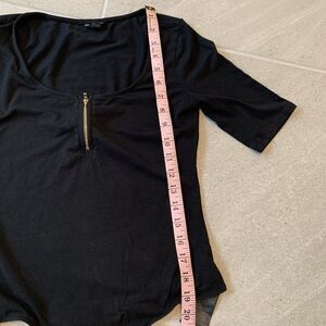 Guess Womens Black Body Suit With Gold Zipper Size Small