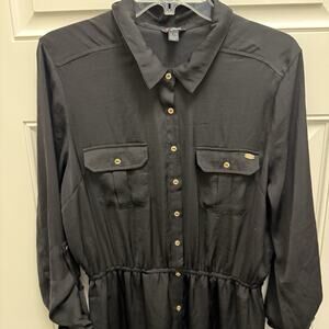 Guess Women's Black Long Sleeve Button Dress Size XL