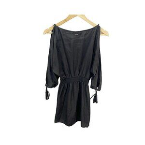 Guess Womens Black Long Sleeved Fringe Mini Dress Sz XS Cut Out Sleeved A-line