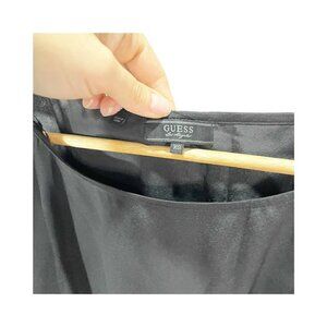 guess womens size xs black mini dress. long sleeved with cut out detail and fringe. mini in length, a-line fit. soft satin fabric and lightweight. in excellent condition