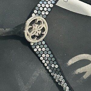 Step into effortless style with these Guess women’s black flip flops featuring sparkling rhinestone straps and the iconic Guess logo emblem. Designed with a lightweight sole and comfortable thong fit, these sandals are perfect for warm-weather wear. Ideal for the beach, poolside, or casual outings, these chic Guess sandals add a touch of glamour to any summer outfit. Pair them with sundresses, shorts, or swimsuits for a stylish yet relaxed look.