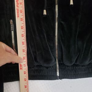 Guess Womens Black Velour Crop Y2K Style Bomber Jacket Metal Zippers Size XL