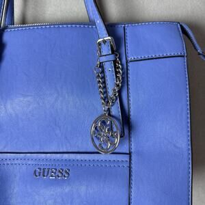 Guess blue handbag, Guess shoulder bag, large tote purse, Guess logo charm purse, women’s designer handbag, everyday Guess bag, structured tote, stylish blue purse