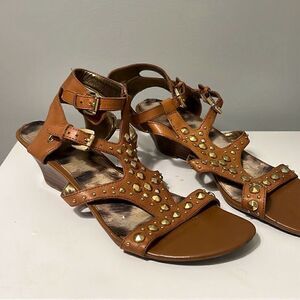 Guess Women's Brown Classic Studded Gold Gladiator Wedge Heel Sandals Size 8 M