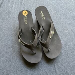 Guess Women's Brown Flip Flop Platform Wedge Gold Heart Charm Sandals Sz 11 Y2k