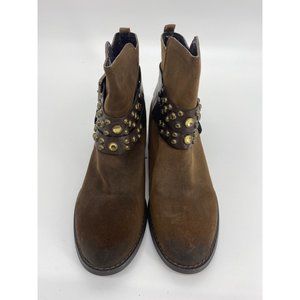 Guess Women's Brown Leather Studded Rhinestone Cowboy Ankle Boots Heels Sz 7.5M