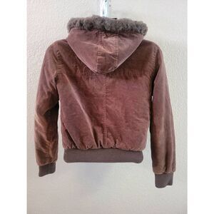 Guess Women's Brown Full Zip Faux Suede Leather Faux Fur Hooded Jacket Coat Size Medium