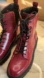 Bold burgundy boots with lace-up design. Durable and stylish for any occasion. Size 8