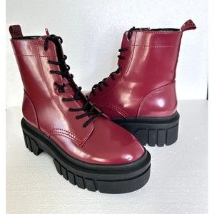 Guess Women’s Burgundy Lace Up Zip Rugged Outsole Combat Ankle Booties Sz7.5 NEW