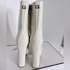 Guess Womens Byra Ivory Patent Square Toe Block Heel Mid-Calf Boots Shoes 8 New