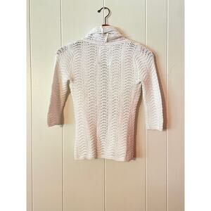 Guess Womens Cardigan Medium White Open Knit Cropped Open Stretch Cottagecore