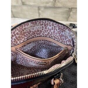 Guess Women's Cheatin' Heart Dome Satchel Black Leopard SL481207 Logo Charm READ