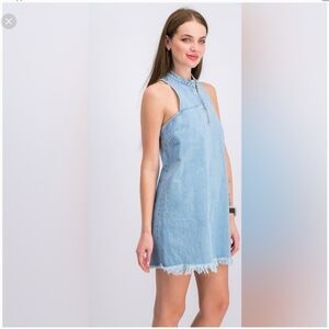 Guess Womens Cotton Halter Distressed Relaxed Denim Mini Dress Blue Size Small