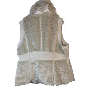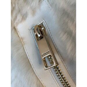 Guess Womens Cream Faux Fur & Leather Asymmetric Zip Vest XL 10009