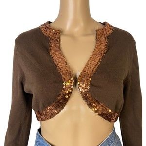 Guess Women's Cropped Brown Sequin Cardigan Size Small / Petite