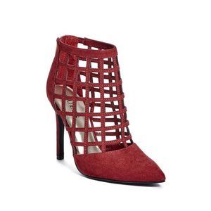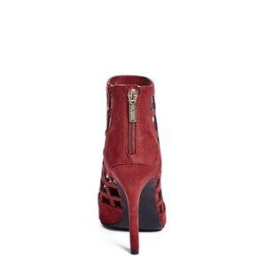 Guess Women's Daleney Caged Heels In Red Faux Suede Size 8.5