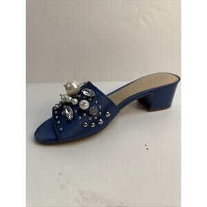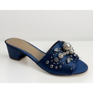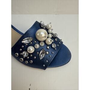 Guess Womens Dark Blue Satin Embellished Slip on Sandals Mules Heel Size 7M NWB