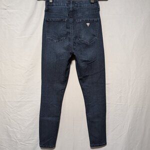 Guess Women's Dark Wash Skinny Jeans Iconic Triangle Logo Back Pocket Size 25