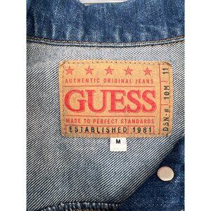 Guess Women's Denim Jacket Medium Blue Button-Front Long Sleeve