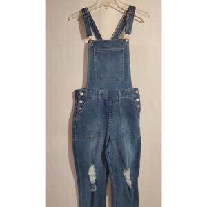 Guess Womens Distressed Bib Denim Overalls Size 29 Blue Jean Utility Pockets