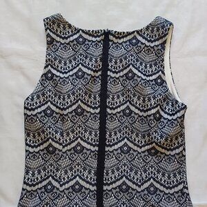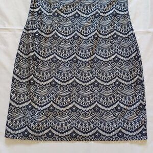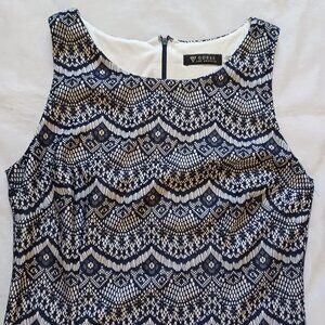 Guess Women's Dress Navy Blue White Lace Sleeveless Sheath Knee Length Size 12