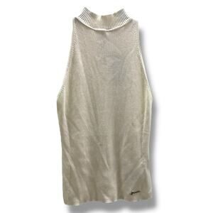 Guess Women's Eco Blaire Halter Neck Sleeveless Sweater Cream Ribbed Tank XL NEW
