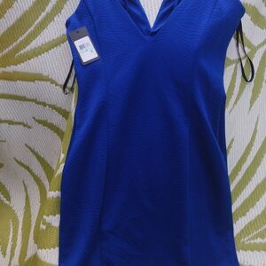 Stylish mini dress by Guess. Features an electric blue color and strappy design. Ideal for a night out. Brand new with tags and never worn.