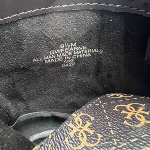Guess Women's GW Fearne Combat Boots. Tagged women's size 9.5. Black and gold in color. Gold zipper, G emblem, and metal accent piece. All zippers in working condition. Chunky lug sole. In excellent preowned condition with minimal signs of wear. 2.5 inch heel height.