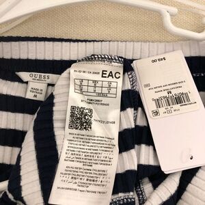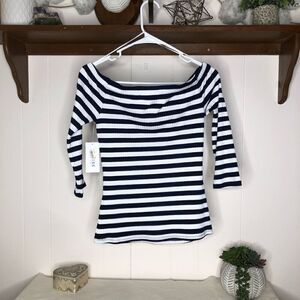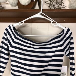 Guess Women's Gibson Striped Rib-Knit Off-the-Shoulder Top Navy & White Medium NWT