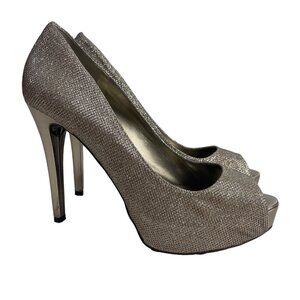 Guess Women's Gold Glitter Multi Fabric Peep Toe Pumps Sz 10M - Original Box