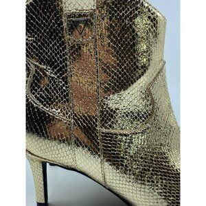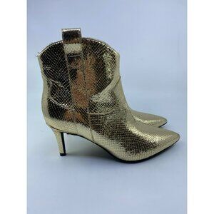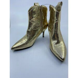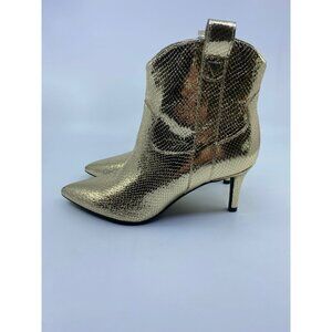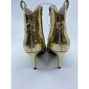 Guess Womens Gold Snake Print Ankle Boots With Pointed Toe & Stiletto Heel Size