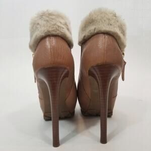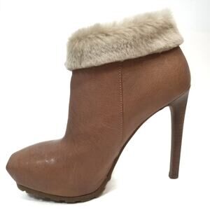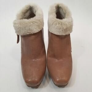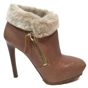 Guess Women's Ivorie Leather Faux Fur Trim Stiletto Heel Ankle Boots Brown 5.5