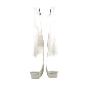 Guess Womens Ivory 1-1/2 Platform Cushioned Logo Byra Square Toe Block Heel Zip-up Dress Booties