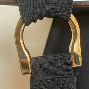 Has gold tone hardware on the shoulder straps.