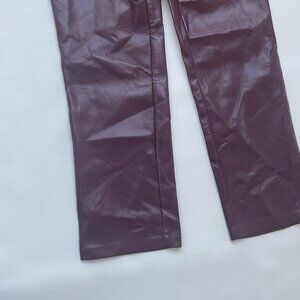 Guess Women’s Kelly Faux Leather Jeans Straight Fit In Burgundy’s Size 27