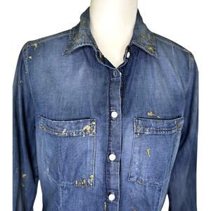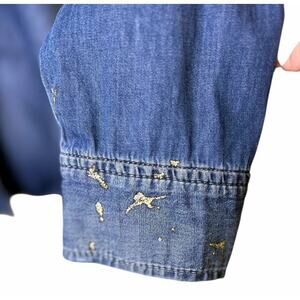 Guess Womens Long Sleeve Button Up Denim Shirt Gold Glitter Detail