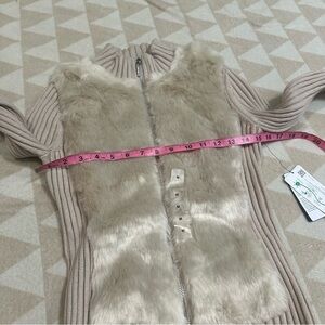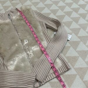 Guess Women's Long Sleeve Fur Mix Zip Front Mila Cardigan Pearl oyster
