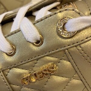 Guess Women’s Loven Sneakers, Gold w White Laceups, Quilted, Size 11 M, NWOT
