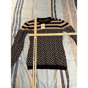 Guess Women's M black/light rum jacquard G logo long sleeve sweater NWT