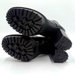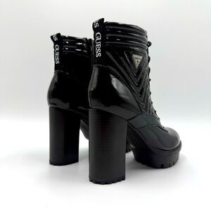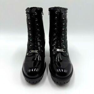 Guess Women’s Manners Shiny Black Lace-Up High Heel Platform Combat Boots 9.5M