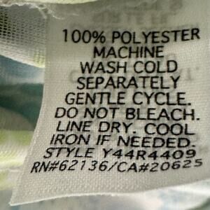 This Guess blouse in size M features a multicolor geometric pattern and is made from lightweight polyester. It has a V-neckline, long sleeves, and a wrap design with a side tie closure. The sheer fabric and regular fit make it ideal for casual spring occasions. It is machine washable and in pre-owned condition.