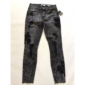 Guess Women’s Mid Rise sexy Curve Skinny Jeans Black Destroy Embroidered Size 27