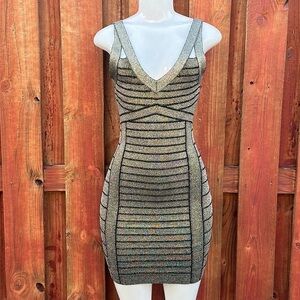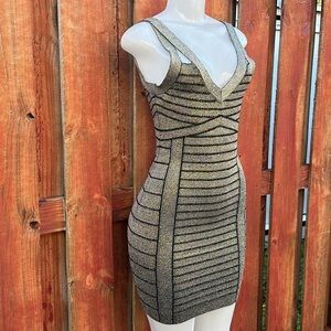 Guess Women’s Mini Black/Gold Bodycon Dress Size S