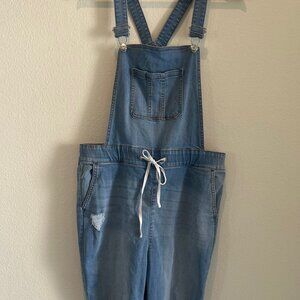 Guess Womens Overalls Blue High Rise Distressed Waist Drawstring Denim Size L